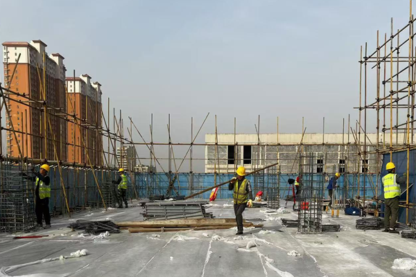 春日天气渐暖,正是施工项目大干快干的黄金期。项目部抢抓有利时机,吹响“冲锋号”,奋力冲刺首季目标任务。压实工作责任,紧盯时间节点,全面梳理节点目标、精准倒排工期,优化施工组织方案,增加钢筋绑扎、模板支设等作业人员共计20余人,分工协作,全速推进项目进度。目前综合教学楼已封顶,正在进行餐厅及多功能厅主体结构施工。